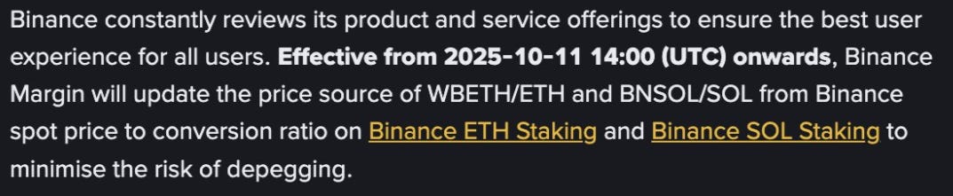 Because something went wrong at Binance HQ and market makers pulled out from the orderbooks. The crash also happened exactly during a scheduled update to their margin price source for wBETH and BnSOL.