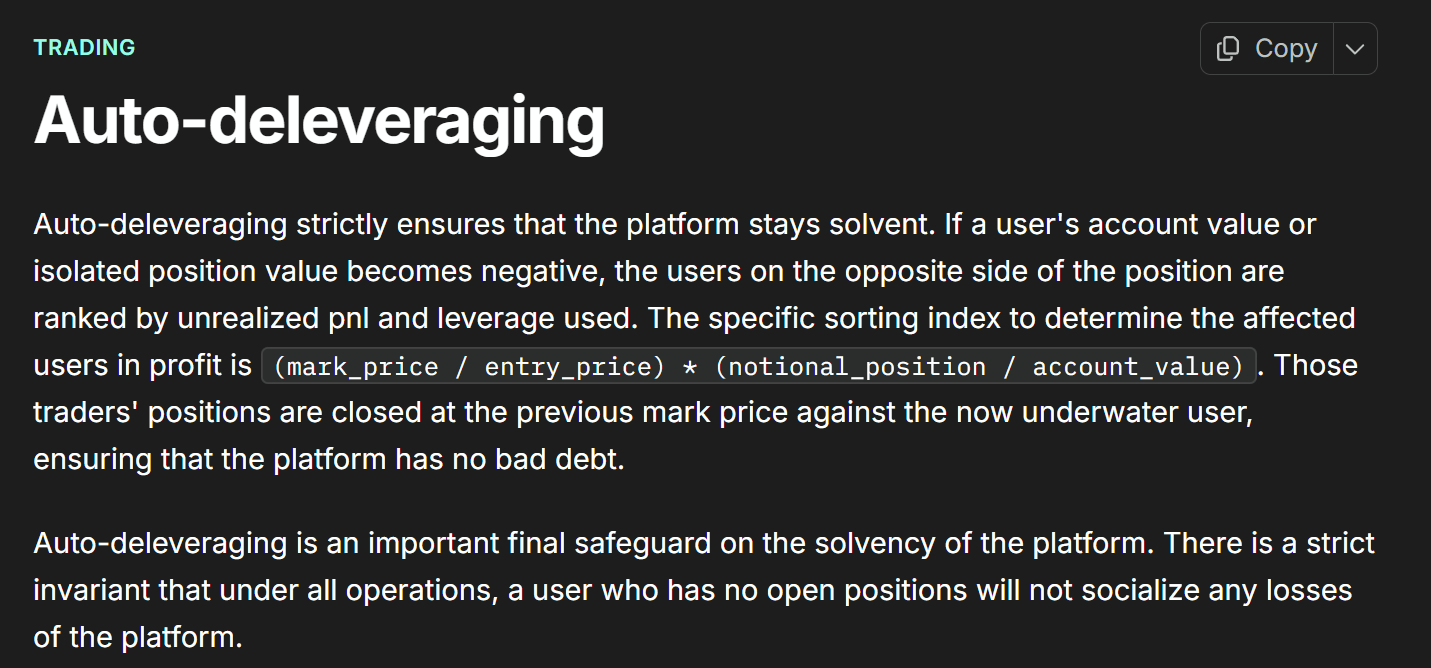 During the madness, Hyperliquid prioritized its solvency above all else. That comes at your expense. This was made clear on Friday and users learned a new term: ADL or auto-deleveraging.