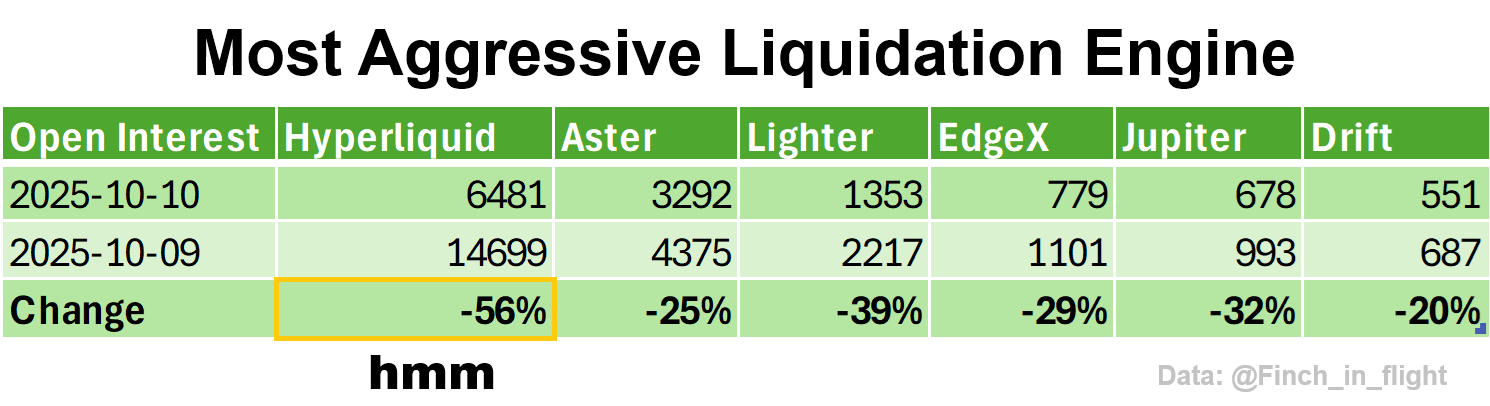 Hyperliquid was the most aggressive liquidator of all DEXs at 56% or $8.2 billion wiped in open interest (see image).