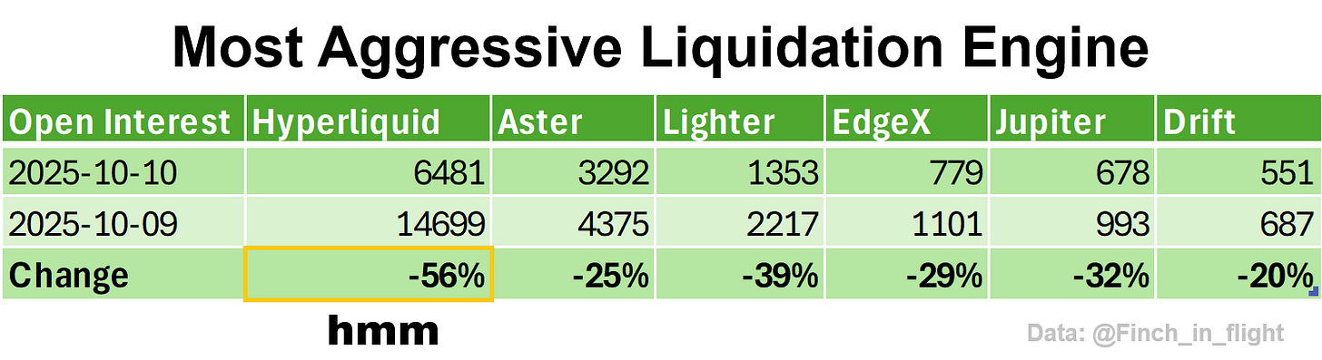 Since Binance led the charge to zero across most alts, Hyperliquid followed via oracle prices. This is a vector of attack against Hyperliquid which should be mitigated in the future.