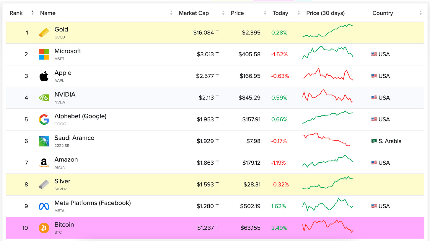 Look at the below list. Do you know why Bitcoin will go from number ten to number one?