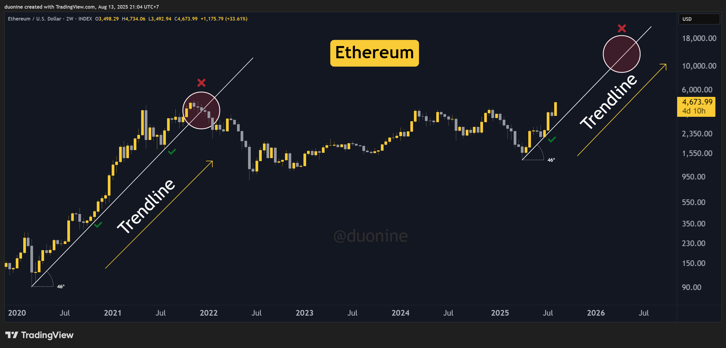 The last time Ethereum was this high, it was 2021. Back then, it topped at $4,868. At the time of writing this, ETH is at $4,720 and we’re just getting started.