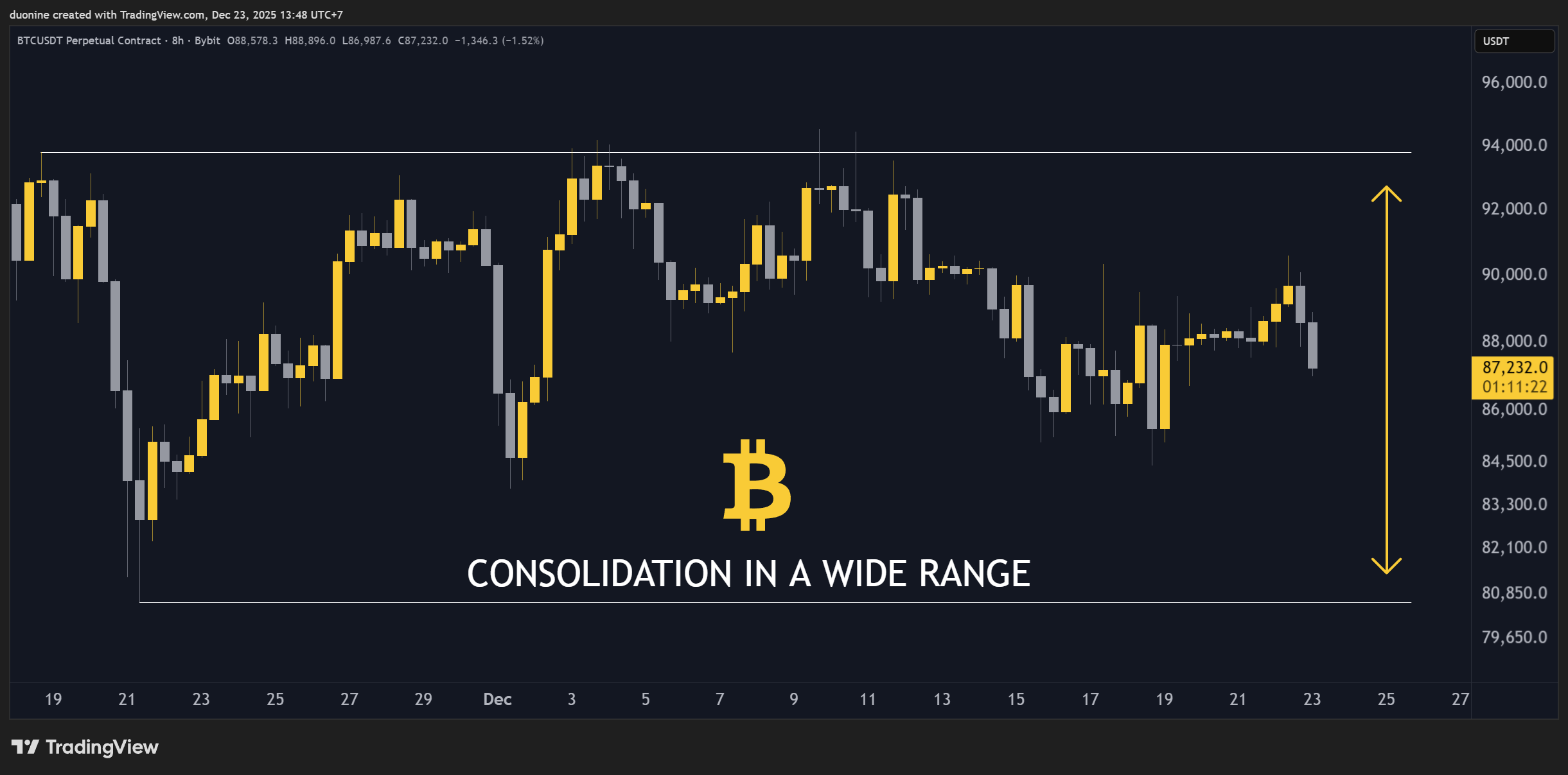 Since late November, Bitcoin has been flat above 85k with a very choppy price action. This is a no trading zone where the best trade is to just wait and give the price time to pick a direction.
