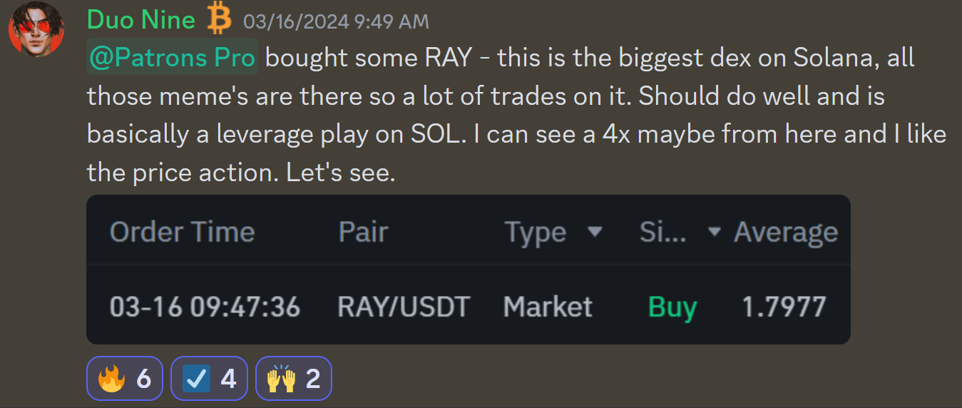In this case, RAY or the token of Raydium where all the Solana meme coins are being traded on. You don’t buy Solana meme coins! If you do, you become a player.