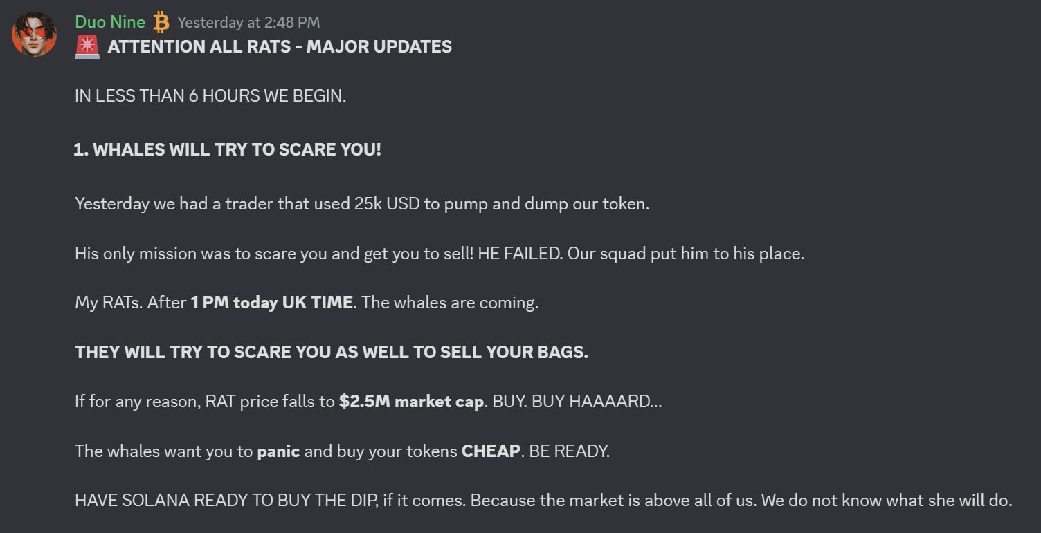 Send $900 dollars worth of RAT to this YCC wallet on the Solana network