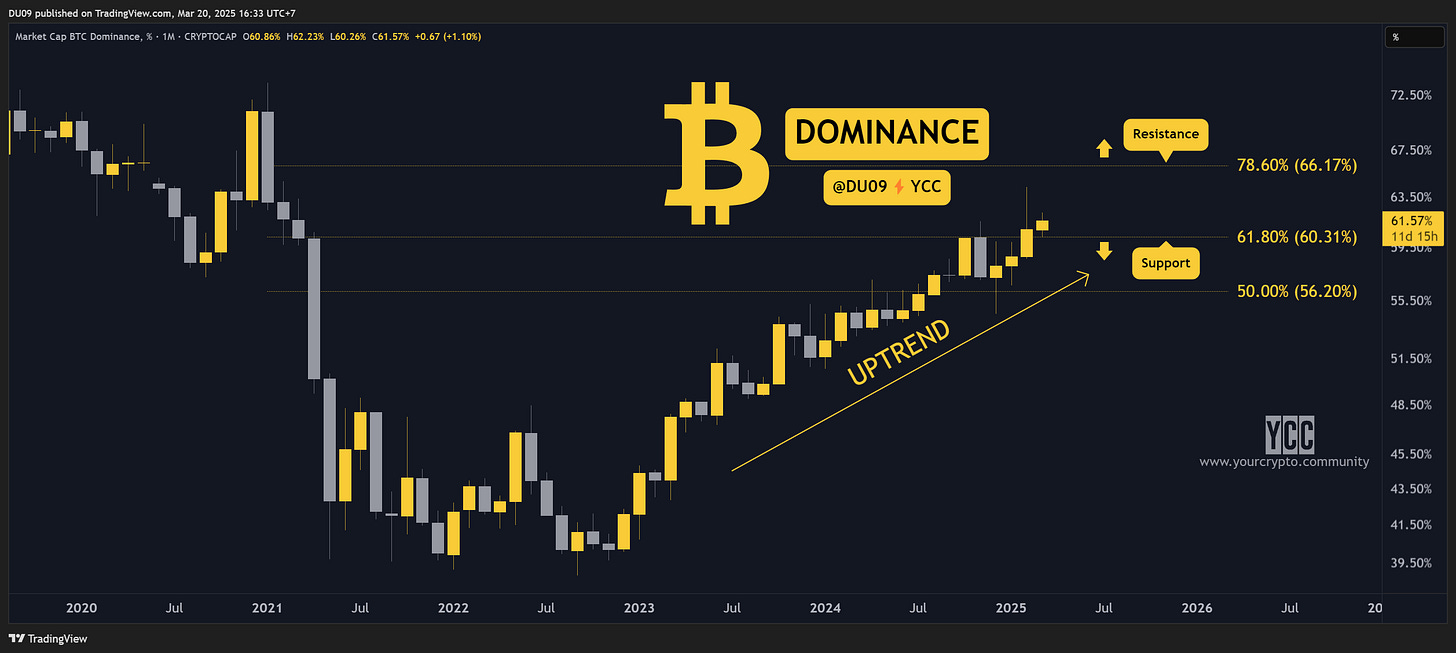 There is only so much money or liquidity in crypto and it is now being divided by millions of altcoins. Moreover, Bitcoin is eating a larger and larger share of the pie. Just look at the market dominance of BTC. It is the highest since 2021 at over 60%!