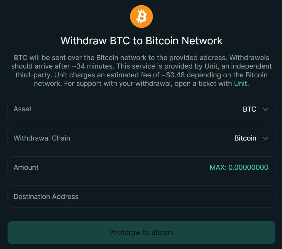 You can then withdraw the BTC to your cold wallet on the native chain (see image below). You won’t get anything better than this.