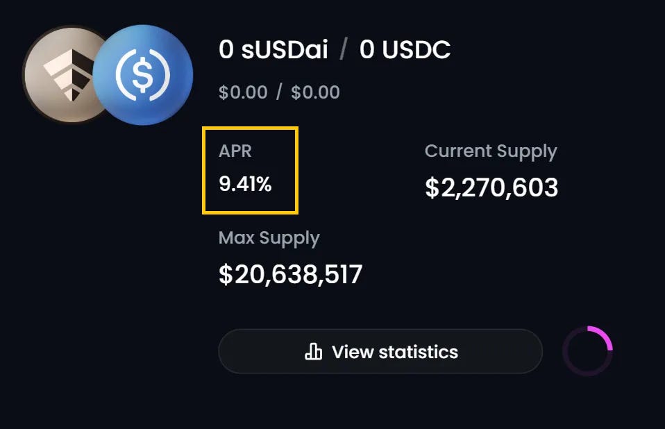 Fluid is like AAVE, but with additional features, including integration with newer protocol like USDai. This USDai vault offers 9.4% APR right now. That’s over 2x the market rate!