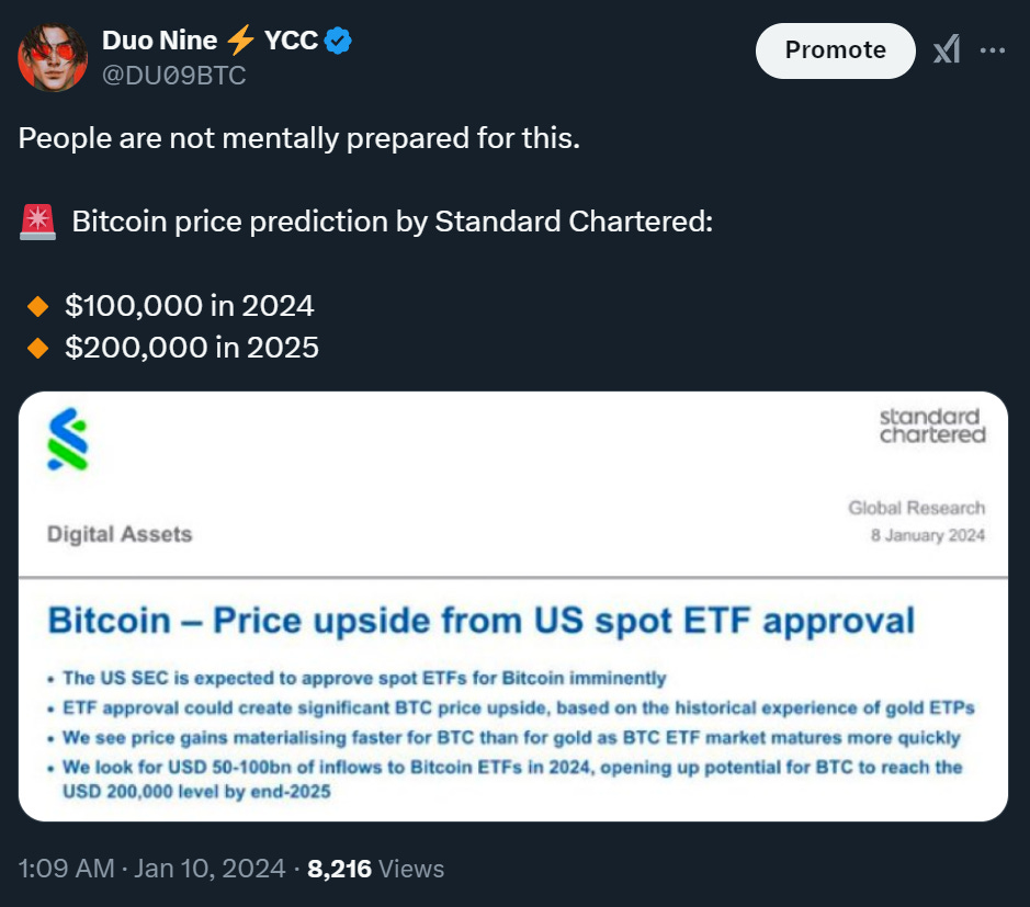 Back in January 2024, Standard Chartered said Bitcoin will reach 100k in 2024 and 200k in 2025. They were right about 2024. Will they also be right about 2025?