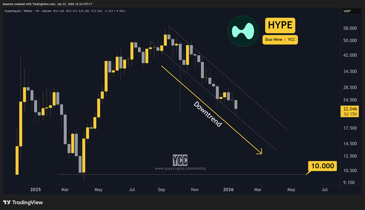 Whatever hype HYPE had left in 2025, is now gone. The price is down 65% since its all-time high. I expect this bearish price action to continue in 2026 until at least -80% to -90% from ATH.