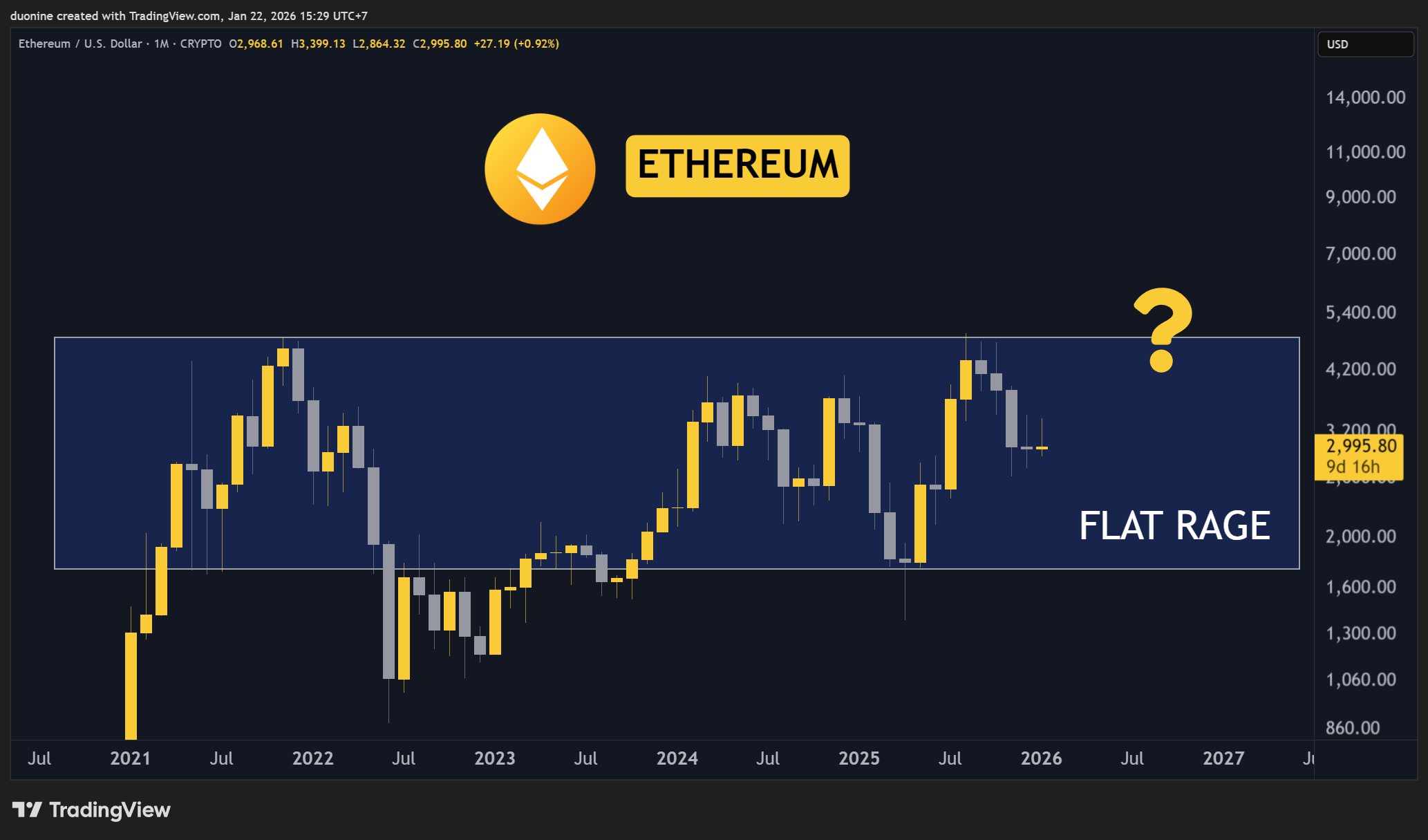 Ethereum has been flat since 2021. Yes. Just look at the price action on the chart. This is because of multiple reasons, one being that Ethereum has become too complex and lost focus for a while. Even Vitalik agrees.