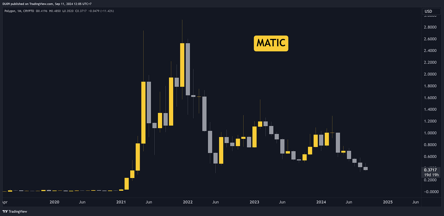 A good example of this is MATIC or Polygon. They rebranded into POL. The new name sounds worse than the original. Regardless, MATIC failed to capture market share and was overshadowed by other Layer-2 chains like Arbitrum or Optimism.