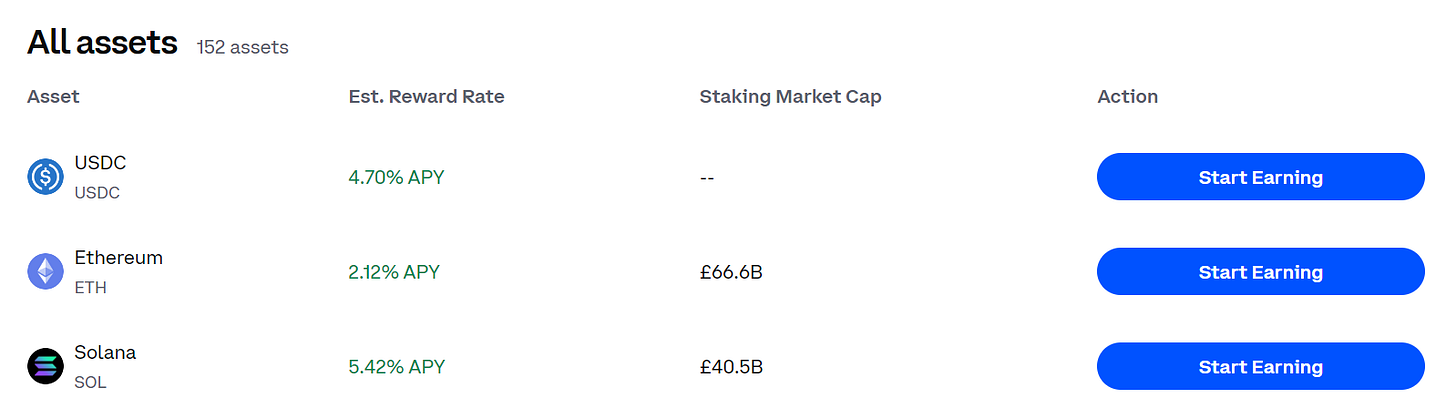 Below is the USDC APY on Coinbase. The rate is around 5%.