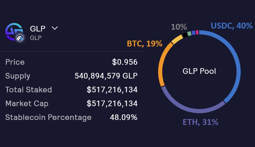If that does not impress you, then probably the next image will. You see, the problem with GLP is that you also hold other assets, not just Bitcoin. You are exposed to Ethereum volatility, USDC and a few other altcoins (albeit with a very small allocation).