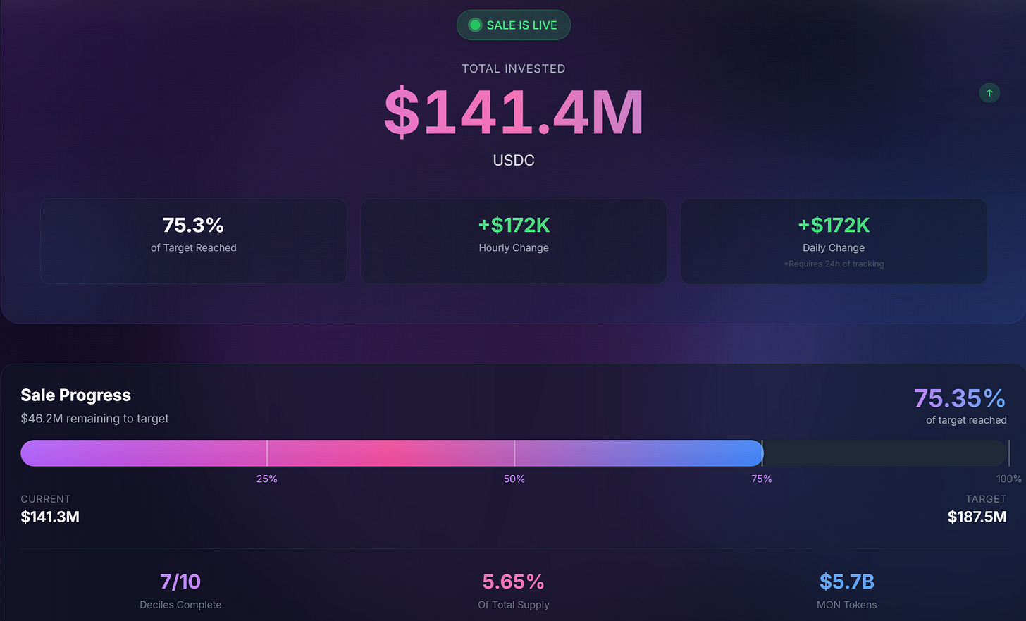 The Monad sale on Coinbase has two days left to go and is already filled at 75%. You can track the progress live here without an account. This will likely be fully filled and oversubscribed at this rate by tomorrow.