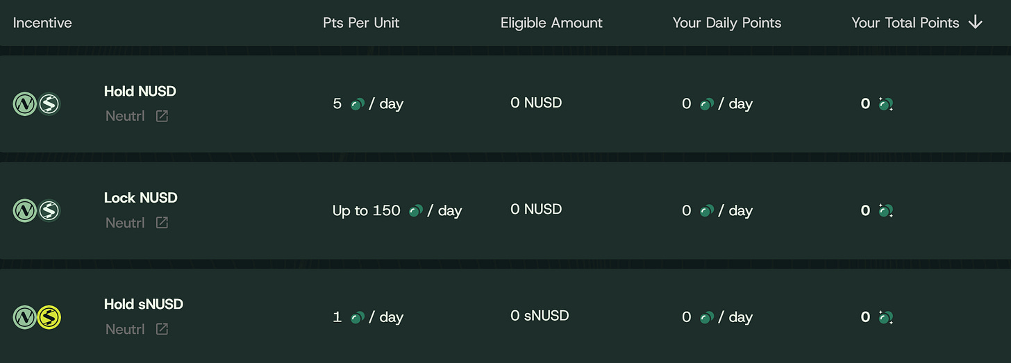 The Neutrl points campaign has started. The mechanics are somewhat similar to USDai where you trade your stablecoins for NUSD to farm points which will turn into an airdrop later.