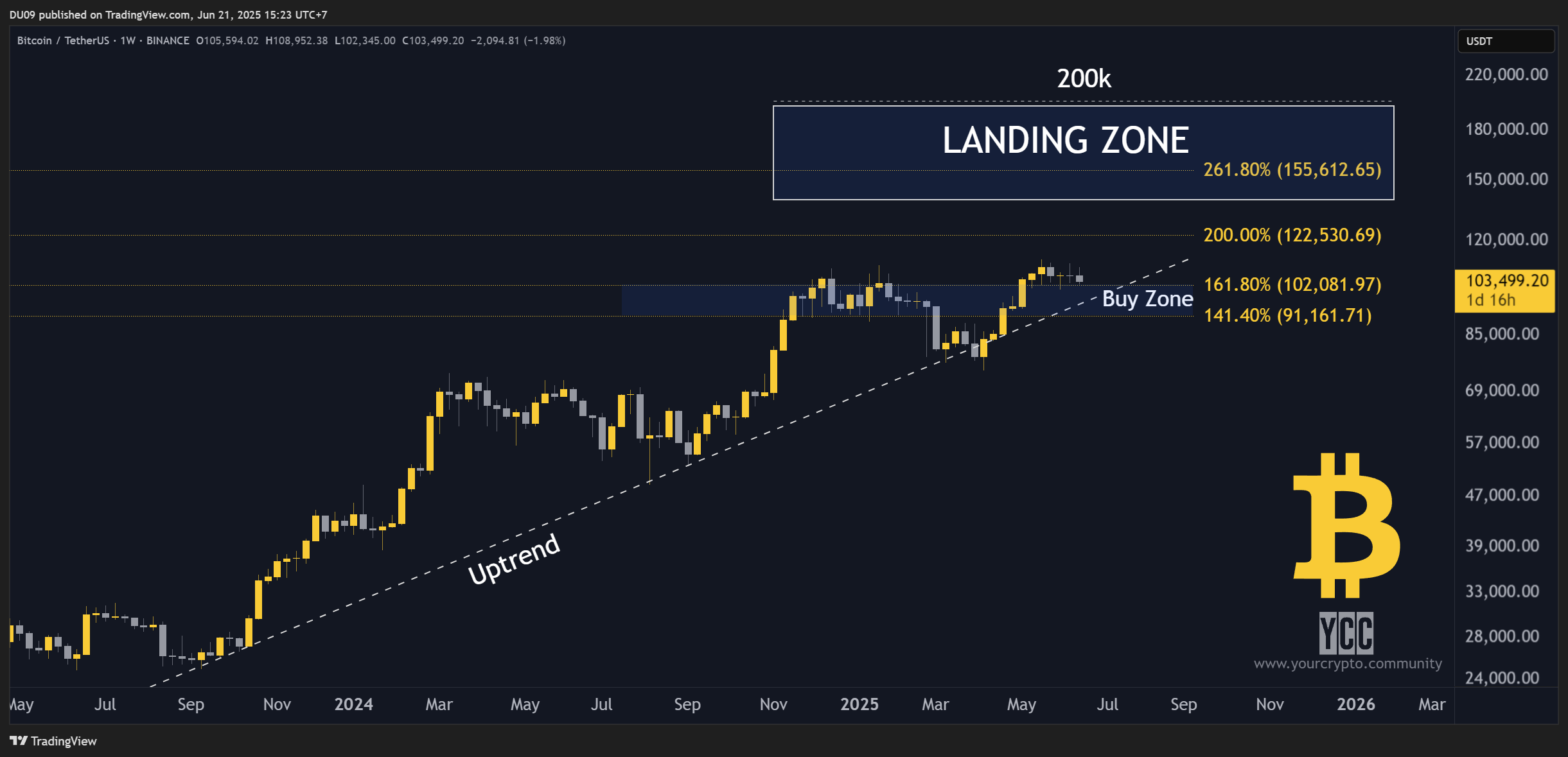 Nevertheless, the price action is suggestive of a significant move in the coming days and weeks. If you’re sitting in cash, aim to allocate it in the buy zone between 102k and 91k if the price decides to visit that range again.
