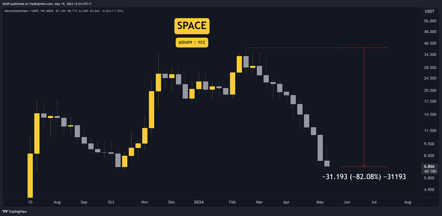 We’re here today. After an early pump this year, the market went flat, at least for Bitcoin. However, for altcoins, the market is in a full blown bear market. Just look at this chart. Brutal. This is just one example.