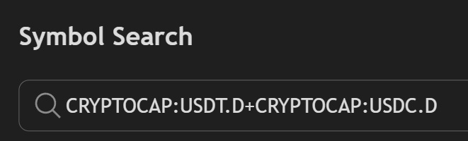 If you want to create the above chart, simply open the search bar for symbols in TradingView and type this: CRYPTOCAP:USDT.D+CRYPTOCAP:USDC.D
