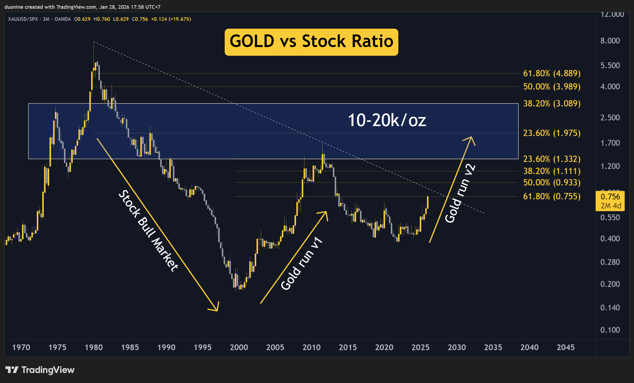 In other words, Gold is expected to continue its uptrend and outperform both Bitcoin and the US stock market in the near term. In the medium term, a pullback is likely sometimes in 2026 which can give you a good entry if you’re aiming for 10k or 20k within three to five years.