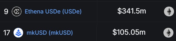 For example, mkUSD can be minted against stETH and then used as collateral to borrow DAI. Next, you can use DAI to buy more ETH and use it to mint more stETH. Then you can use stETH to mint more mkUSD to get more DAI and ETH. See the problem?