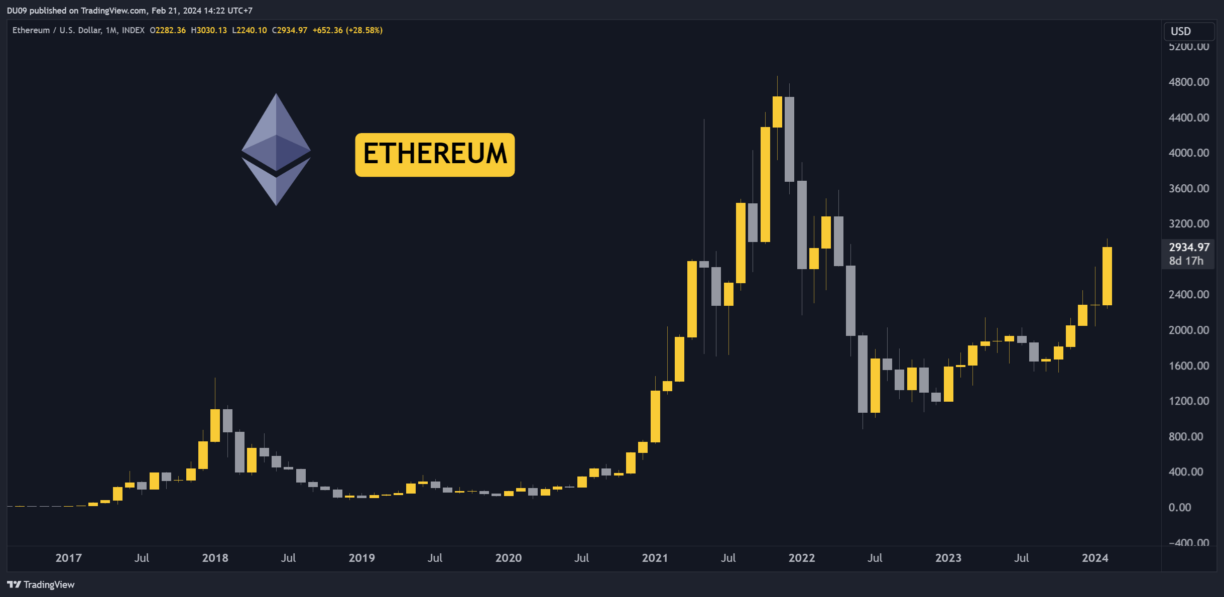 This bubble is quickly picking up speed! Ethereum just broke above $3,000 this week before a pullback started. It pumped 30% in February so far. Biggest pump we’ve had since 2023!