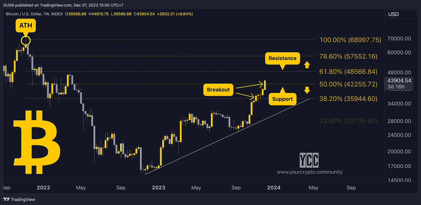 TLDR: Bitcoin is a 50% pump away from its ATH at 69k and is up 170% in 2023! Altcoins are also about to run hard. All signals point up! Volatility will also increase, so be prepared for that.