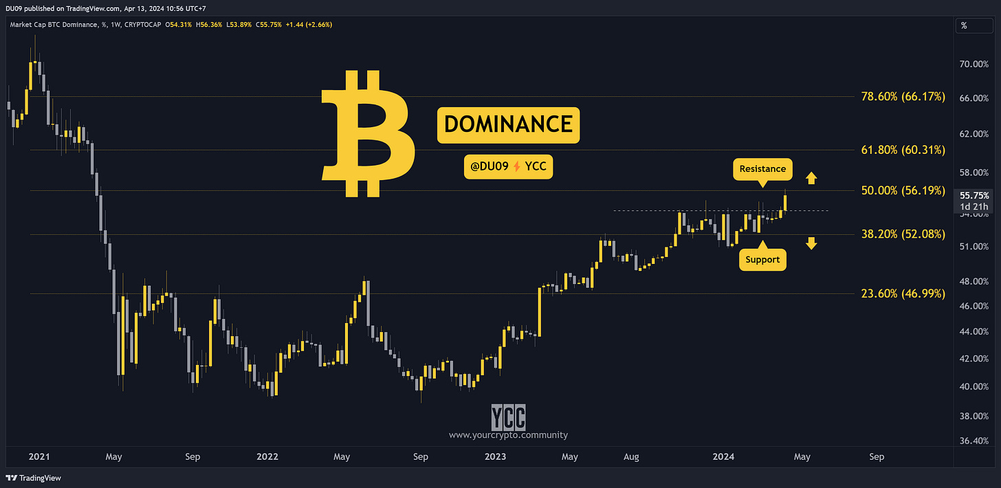 The days before the halving were going to be volatile, but I did not expect altcoins to get crushed to these levels while BTC just casually ranges. If this trend continues, BTC Dominance will likely go to 60% as altcoins struggle to keep up in the post-halving months.