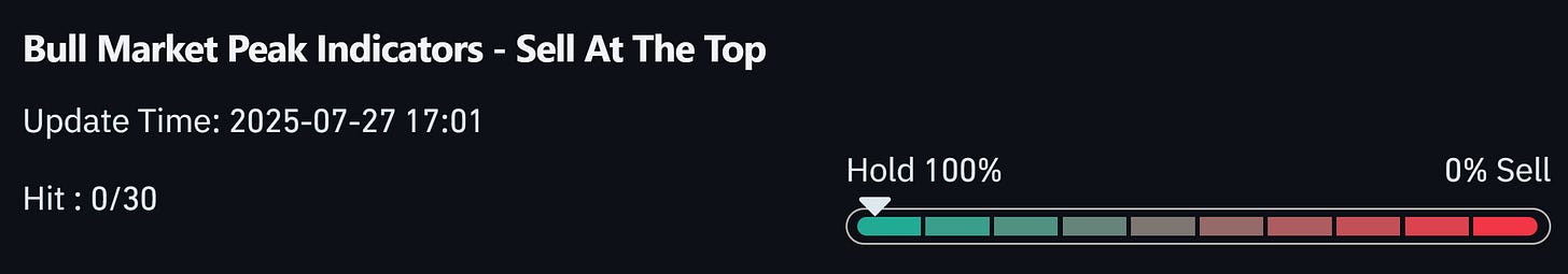 If you check the 30 most popular top indicators for Bitcoin, you’ll see that none of them flag that we’re anywhere close to a top. This is great news for Bitcoin and altcoins since they have plenty of room left to pump.