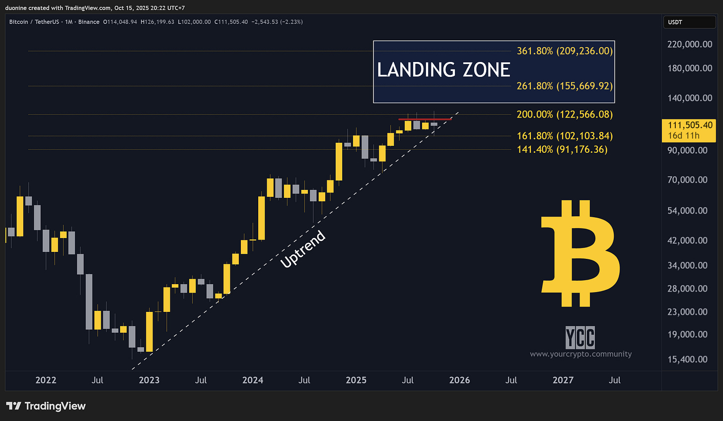 Bitcoin remains bullish on the above chart using the monthly timeframe. However, time is running out and the price needs to sustain new highs. We’ve had four months of flat price action that did not allow the price to stay above $120k.