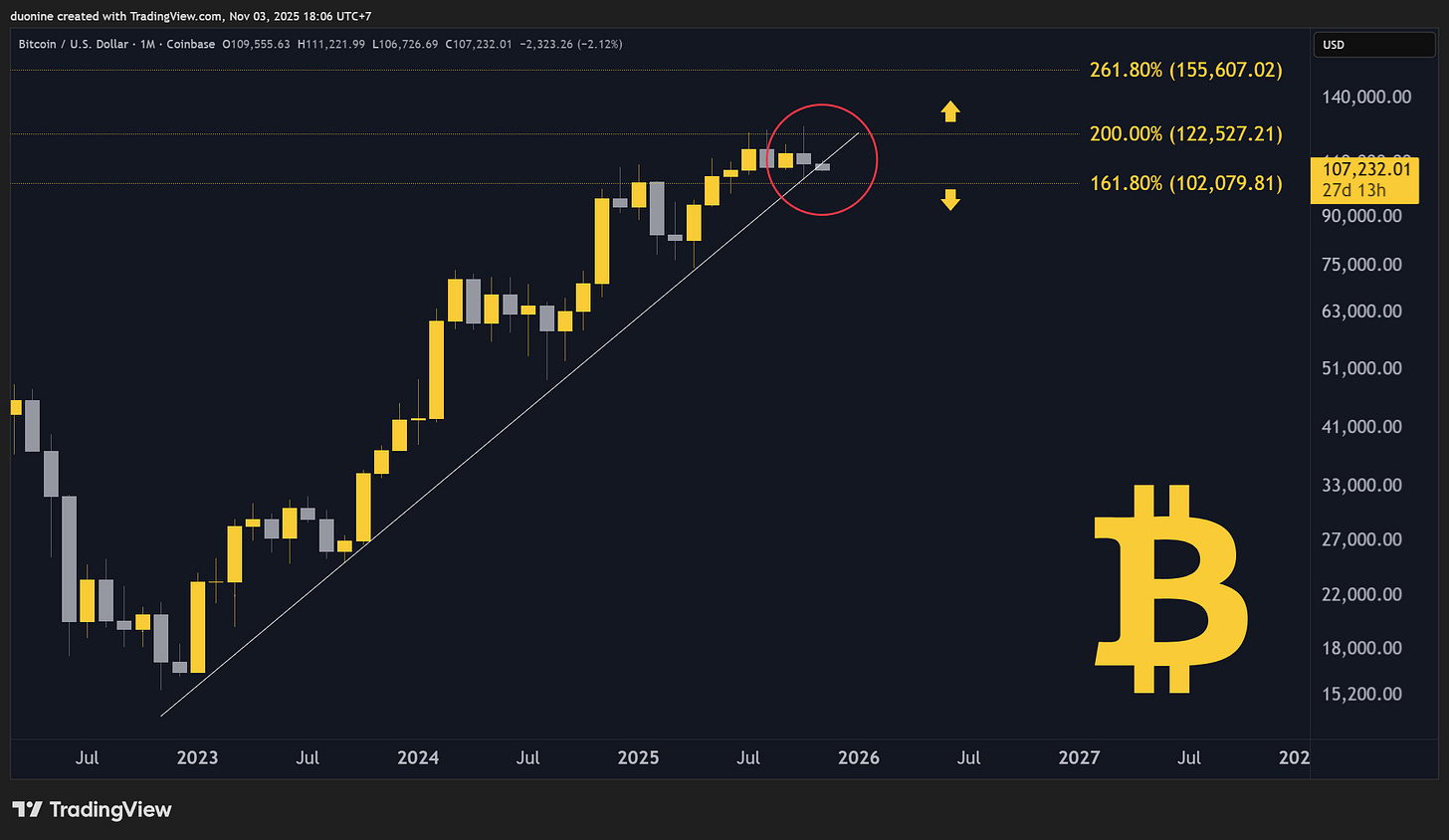 TLDR: November will likely push Bitcoin out of its current range one way or another. A break under 102k is bearish, a break above 120k is bullish.