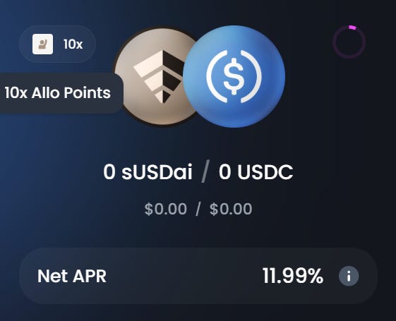 That’s 12% APY right there plus an airdrop later since you’re also farming 10x allo points against your USDC deposit. This is an easy win considering current market conditions.